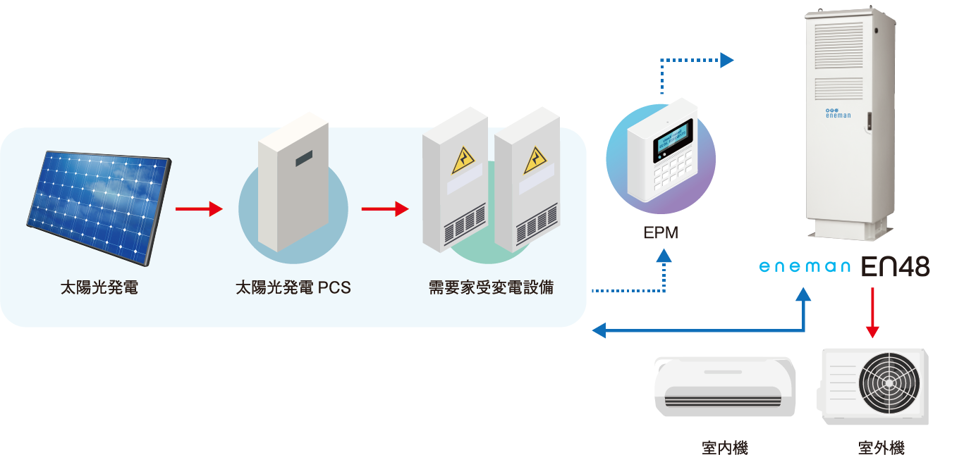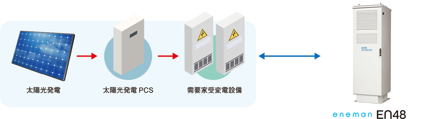 Eneman Management Control(EMC)により常時電力使用状況を監視し自動で蓄電池出力をコントロール。